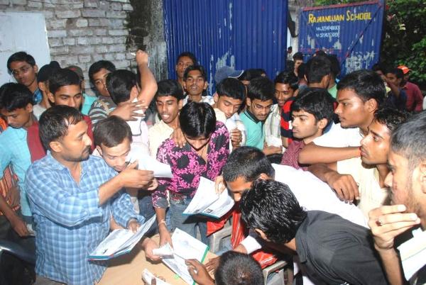 Rush for registration: Pranav Kumar receiving the application forms. The week-long